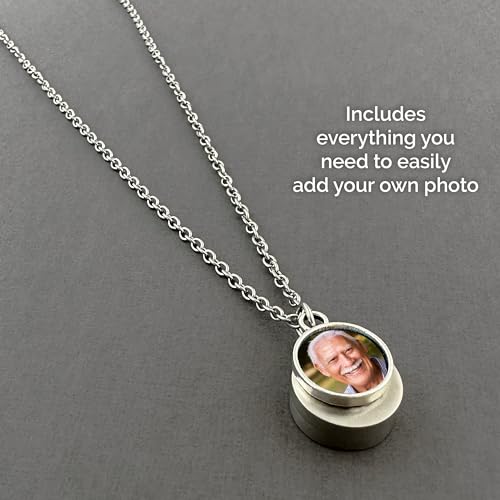 - Includes everything you need to easily add your own photo: photo necklace with blank photo charm and urn, fitted crystal clear self-adhesive photo cover, adhesive strip, online access to photo resizer program.